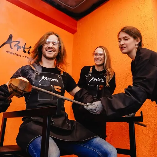 Заморозьте время в стекле! Попробуйте мастер-класс по стеклодувному искусству, где вы научитесь выдувать стакан с эффектом треснувшего льда! Застолья еще никогда не были такими стильными!