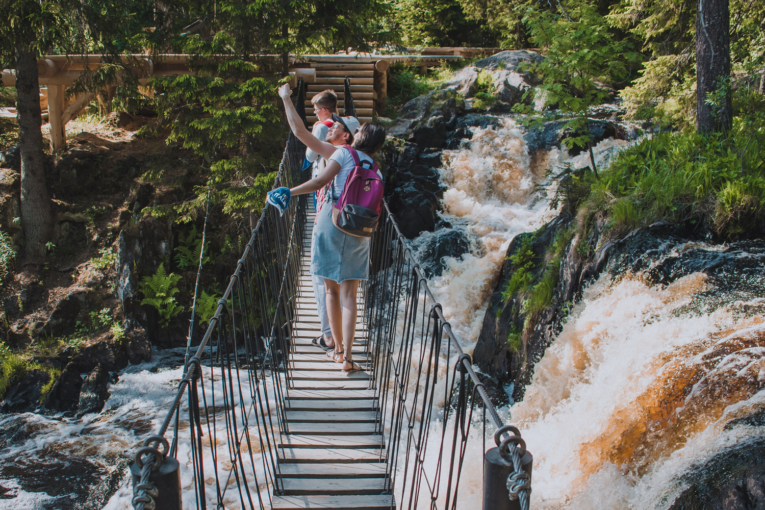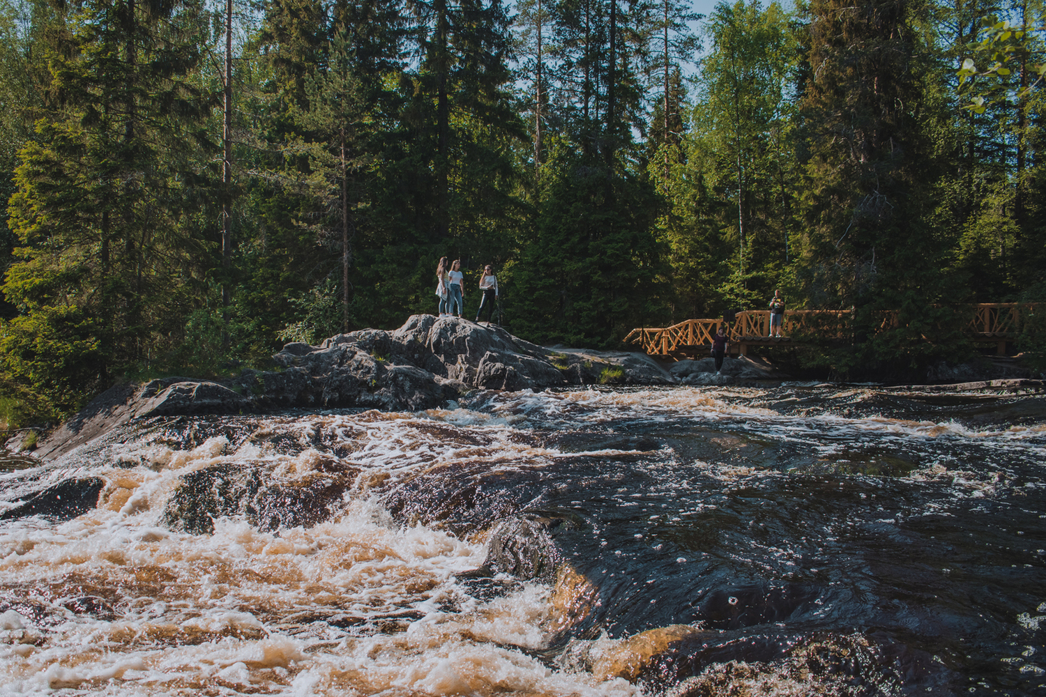- Живописные водопады Ахвенкоски, где снимали фильм «А зори здесь тихие». Здесь вы погуляете, отдохнете и даже сможете взглянуть на водопады сверху, с подвесного мостика.