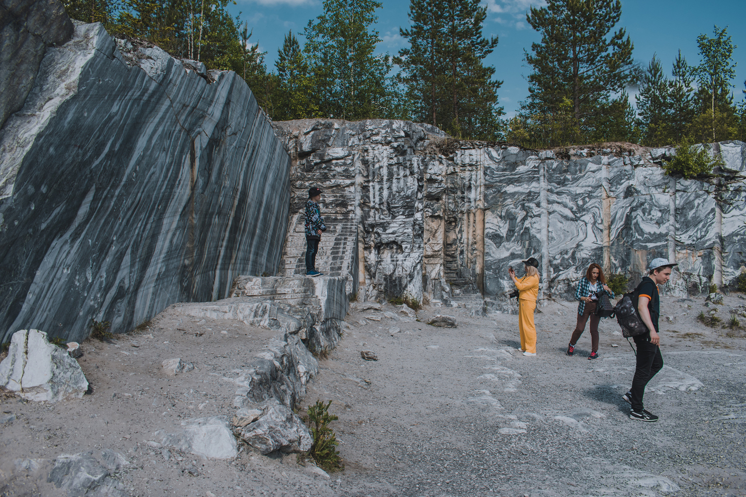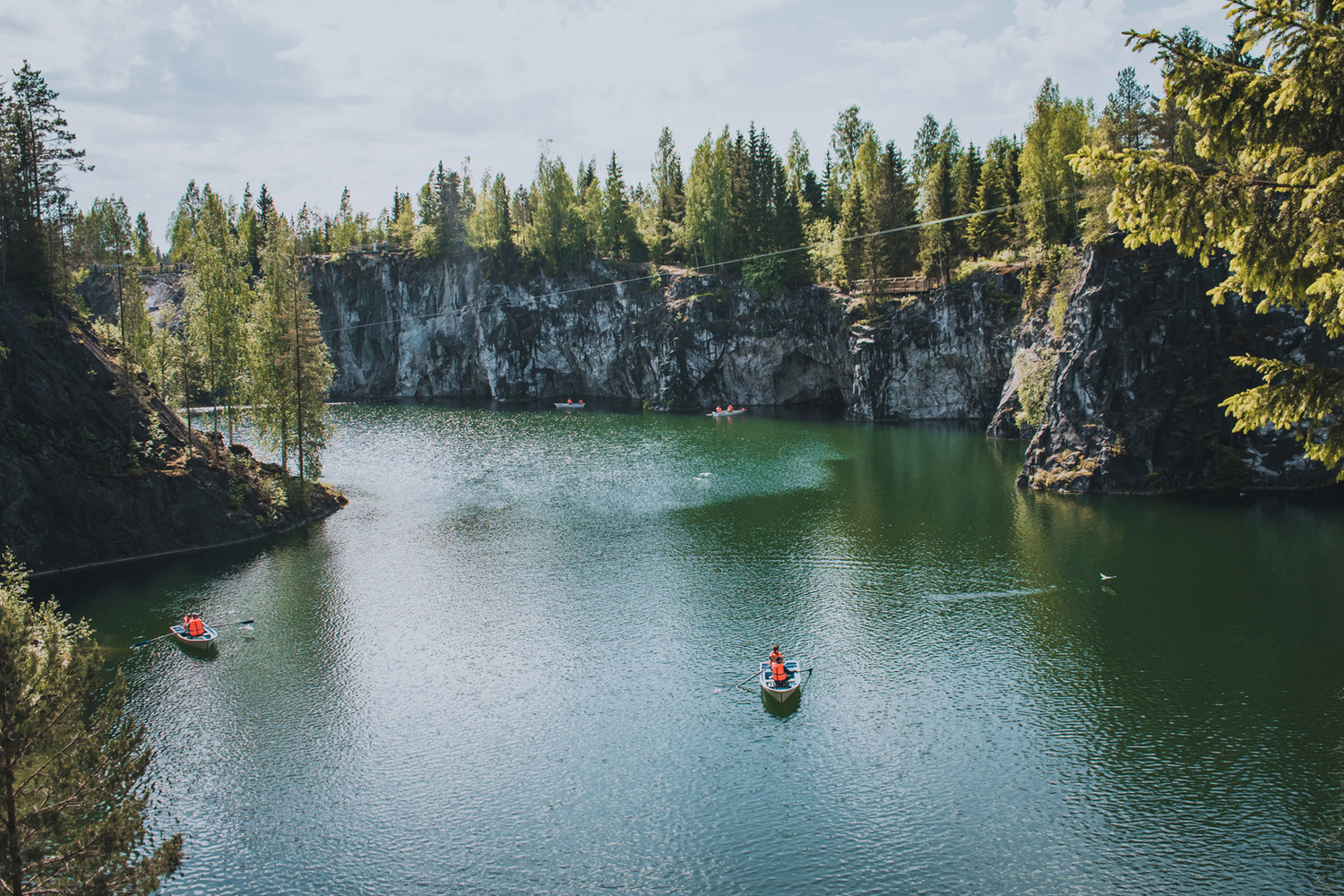 - Горный парк Рускеала - настоящая жемчужина Карелии и основная цель путешествия. Здесь вы полюбуетесь волшебными пейзажами, сделаете сотни замечательных фото и при желании испробуете активные развлечения для любителей экстрима. Захватывающий дух полет на троллее среди мраморных скал, прямо над Мраморным каньоном - действительно впечатляет!