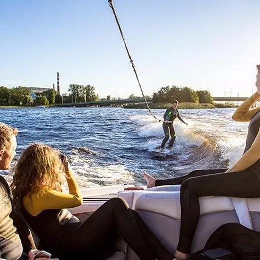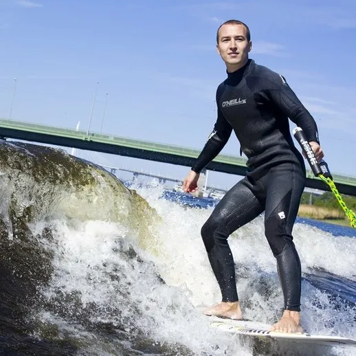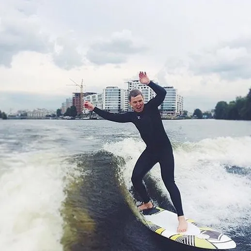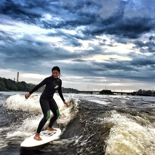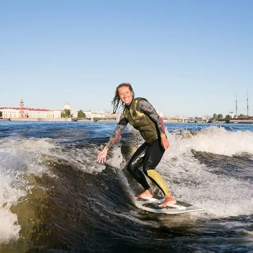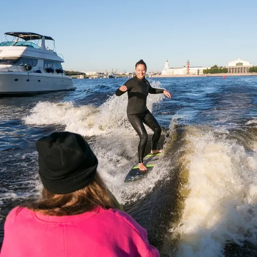 Серфинг - невероятное экстремальное удовольствие для смельчаков, насладиться которым возможно в каменных джунглях. Каким образом? Да самым простым - на это есть вейксерфинг! Он представляет собой разновидность катания на специальной доске без креплений, вейксерфе, за катером-буксировщиком, который движется и создает после себя отличную волну. На старте равновесие удерживается при помощи веревки, которая затем отпускается. Таким образом у человека создается ощущение свободного, независимого катания. Но если Вы не вполне уверены в своих силах, то веревку можно и не отпускать, а балансировать на волне вместе с ней. Просто продолжайте наслаждаться процессом!