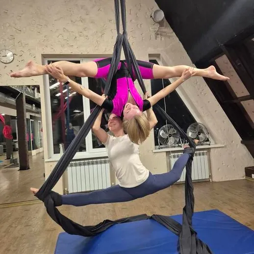 На занятии мы разучим несколько красывых элементов, которые точно получатся у каждого, повисим вниз головой без рук, а самые отважные смогут ощутить свободное падение в элементах - "обрывах".